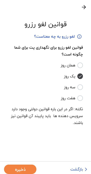 - در صورتی که مالک پت بخواهد یه سرویس رزرو شده را بغو نماید چند روز قبل باید این موضوع را اطلاع دهد؟