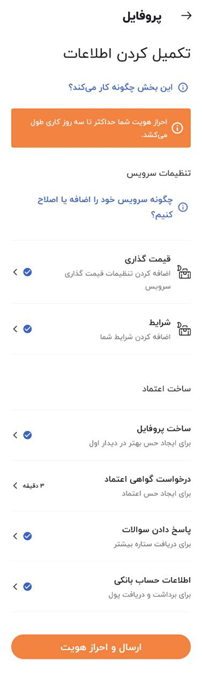 در بخش پروفایل این موارد باید توسط شما کامل گردد: