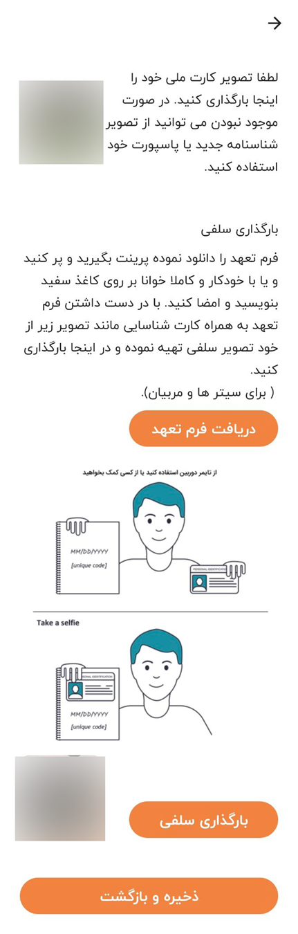- مدارک تکمیلی شامل کپی کارت ملی و عکس سلفی همراه با کارت ملی و تعهد نامه صداقت در انجام کار( این بخش برای سیتر ها الزامی است و بدون ارسال مدارک خواسته شده نمی توانید در پتسی فعالیت نمایید.)